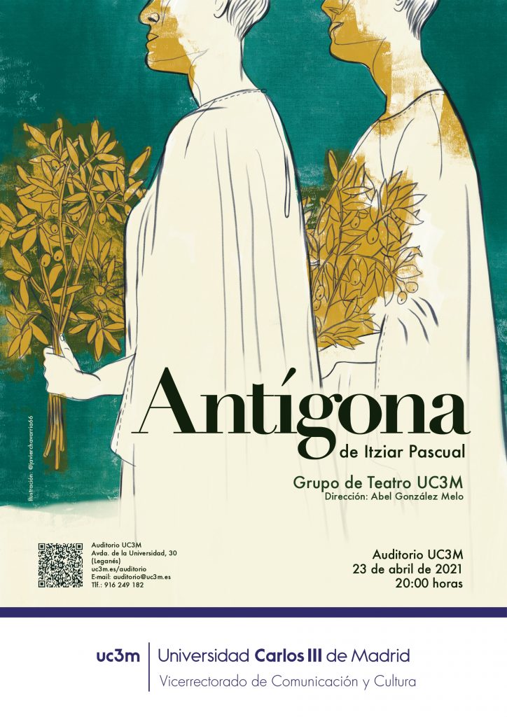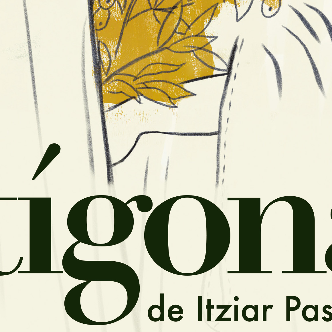 Diseño de cartel y programa de mano para la obra de teatro Antígona, con texto de Itziar Pascual y dirigida por Abel González-Melo. Obra para la que también se hizo el diseño de escenografía y vestuario.